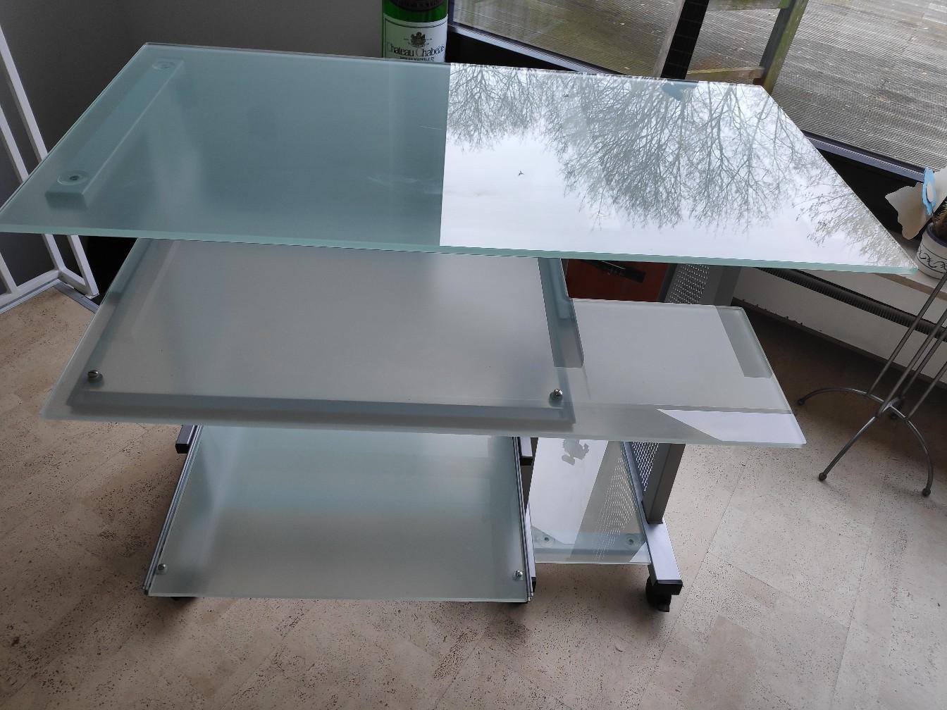 Schreibtisch 120x80 glas / chrom in stilvoller schreibtisch für den. Jeder tisch ist ein individuum, so wie sein besitzer. Kerkmann schreibtisch milchglas rechteckig der stilvolle schreibtisch für den gehobenen anspruch der kerkmann schreibtisch in milchglas verbreitet . Eine tür mit milchglas und einen schreibtisch davor. 152x 75 untere platte, 152x 85 insgesamt.